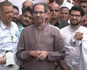 आपण नेहमी म्हणतो आपली संस्कृती आहे. पितृदेव भव:, मातृदेव भव: आणि गुरूदेव भव: असं आपण म्हणतो. पण यांचे गुरू कोण? जे दिल्लीत बसलेत. आणि त्या गुरुच्या आडून अन्याय सुरू आहे. बाजूला गिरणी कामगार आहेत. इथे तुम्ही आहेत. एकूणच महाराष्ट्रात अन्याय होतोय. आपण सर्व मिळून एकवटलो तर त्यांना एकच धडा शिकवूया की हे वळवळ करायला शिल्लक राहणार नाही, असा निशाणा उद्धव ठाकरेंनी साधला. शिवसेना तुमच्या सोबत खांद्याला खांदा लावून तुमच्यासोबत राहील. हे वचन देतो. आपला विजय मिळाल्यावर मी परत येईन. पुन्हा येईन हे फार बदनाम झालं आहे. तसं नाही, मी एकदा वचन दिलं म्हणजे दिलं. आता विजय मिळेपर्यंत थांबायचं नाही. विजय सुद्धा याच ठिकाणी साजरा करूया हे वचन देतो, असं उद्धव ठाकरे म्हणाले.