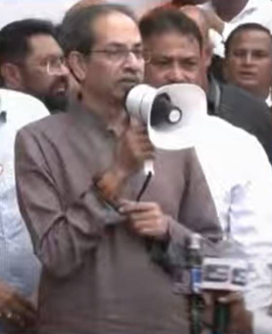 आज़ाद मैदानात हातात मेगा फोन घेऊन उद्धव ठाकरेंची शिक्षकांना साद