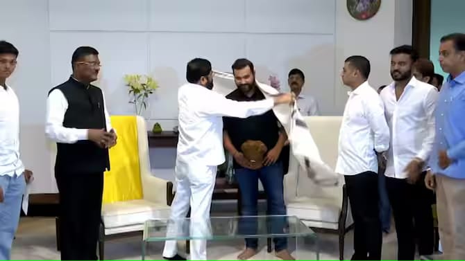 मुंबई – विश्वविजेता रोहित शर्मा, शिवम दुबे, सूर्यकुमार यादव आणि यशस्वी जैयस्वाल यांचा सत्कार मुख्यमंत्री एकनाथ शिंदे यांनी केला.शुक्रवारी वर्षा निवसस्थानी रोहित शर्मा आणि इतर खेळाडू आले होते. त्यावेळी शाल आणि श्रीफळ देऊन मुख्यमंत्री एकनाथ शिंदे यांनी त्यांचा सन्मान केला. मुख्यमंत्री एकनाथ शिंदे यांनी सोशल मीडियाद्वारे या प्रसंगाचे लाईव्ह प्रेक्षपण केले. शुक्रवारी दुपारी रोहित शर्मा महाराष्ट्रातील खेळाडूंसोबत वर्षा निवस्थानवर पोहचला होता. त्यावेळी एकनाथ शिंदे यांनी त्यांचं स्वागत केले. त्यावेळी दोघांमध्ये मराठीमधून गप्पाही झाल्या. विश्वचषकातील प्रसांगावर दीर्घ चर्चा झाली. पारस भांब्रेही यावेळी त्यांच्यासोबत होते. एकनाथ शिंदे यांच्या निवासस्थानावर झालेल्या या कार्यक्रमात प्रताप सरनाईकही उपस्थित होते. विश्वविजेत्या टीम इंडियाच्या स्वागतासाठी गुरुवारी मुंबईमध्ये लाखोंचा जनसागर उसळला होता. मरीन ड्राईव्ह ते वानखेडे स्टेडियमपर्यंत विश्वविजेत्यांची ओपन डेक बसमधून ऱॅली काढण्यात आली होती. त्यावेळी चाहत्यांचा जनसागर रस्त्यावर उतरला होता. कधीही न थांबणारी मुंबई जगज्जेत्यासाठी रस्त्यावर उतरली होती.
